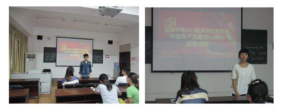 2014年7月1日周二晚19:00,“金沙集团1862cc2012级本科生党支部庆祝中国共产党成立93周年专题组织生活会”在金沙集团1862cc502教室召开。会议由支部副书记覃宪清主持,支部书记王老师及支部正式党员和预备党员共计45人参加了会议(1人请假)。